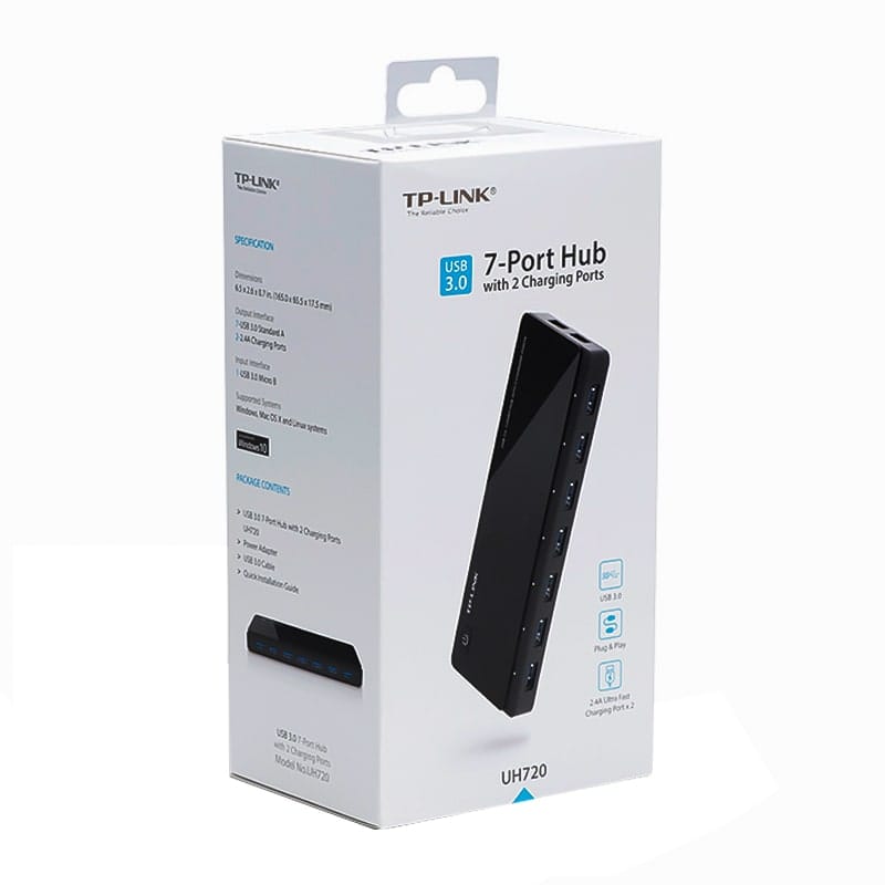 هاب UH720 دارای 7 پورت USB است که به شما این امکان را می‌دهد تا همزمان چندین دستگاه مختلف مانند فلش درایوها، هارد دیسک‌های خارجی، پرینترها، کیبورد، موس، دوربین‌های دیجیتال و سایر دستگاه‌ها را به کامپیوتر یا لپ‌تاپ خود متصل کنید. این ویژگی باعث می‌شود که کاربران بتوانند بدون نیاز به قطع و وصل کردن مداوم کابل‌ها و دستگاه‌ها، از تمامی دستگاه‌های خود به راحتی استفاده کنند. هاب تی پی-لینک مدل UH720 به‌ویژه برای کسانی که به تعداد زیادی پورت برای دستگاه‌های مختلف نیاز دارند، انتخابی مناسب است.